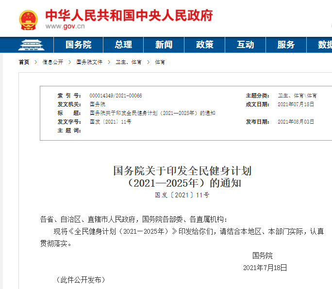几年,国家在多个政策中提出了促进体育和医疗卫生行业的融合。2016年印发的《“健康中国2030”规划纲要》中明确提出,要加强体医融合和非医疗健康干预,推动形成体医结合的疾病管理与健康服务模式。《“十四五”规划及2035远景目标》更是把“推动健康关口前移,深化体卫融合”放在了建设健康中国、体育强国的突出位置。