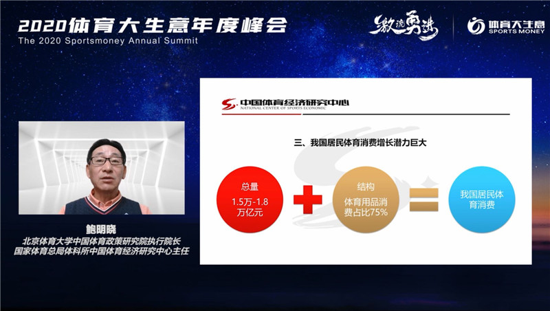 北京体育大学中国体育政策研究院执行院长、国家体育总局体科所中国体育经济研究中心主任鲍明晓在题为“在变局中育先机开新局”的演讲中表示,虽然疫情重创了体育产业,但展望“十四五”时期体育产业发展前景依旧光明,支撑我国体育产业持续稳定发展的底层逻辑不变,新格局孕育新动能、新机遇、新空间。有八大底层逻辑让体育产业在“十四五”时期大有可为:一、国家层面高度重视发展体育产业;二、体育产业是提升人民群众生活质量、生命质量的幸福产业,增长空间巨大;三、我国居民体育消费增长潜力巨大;四、体教融合的机遇;五、体医融合的机遇;六、体旅文商融合发展的机遇;七、提升和优化运动消费场景,八、推动体育数字化、智能化。